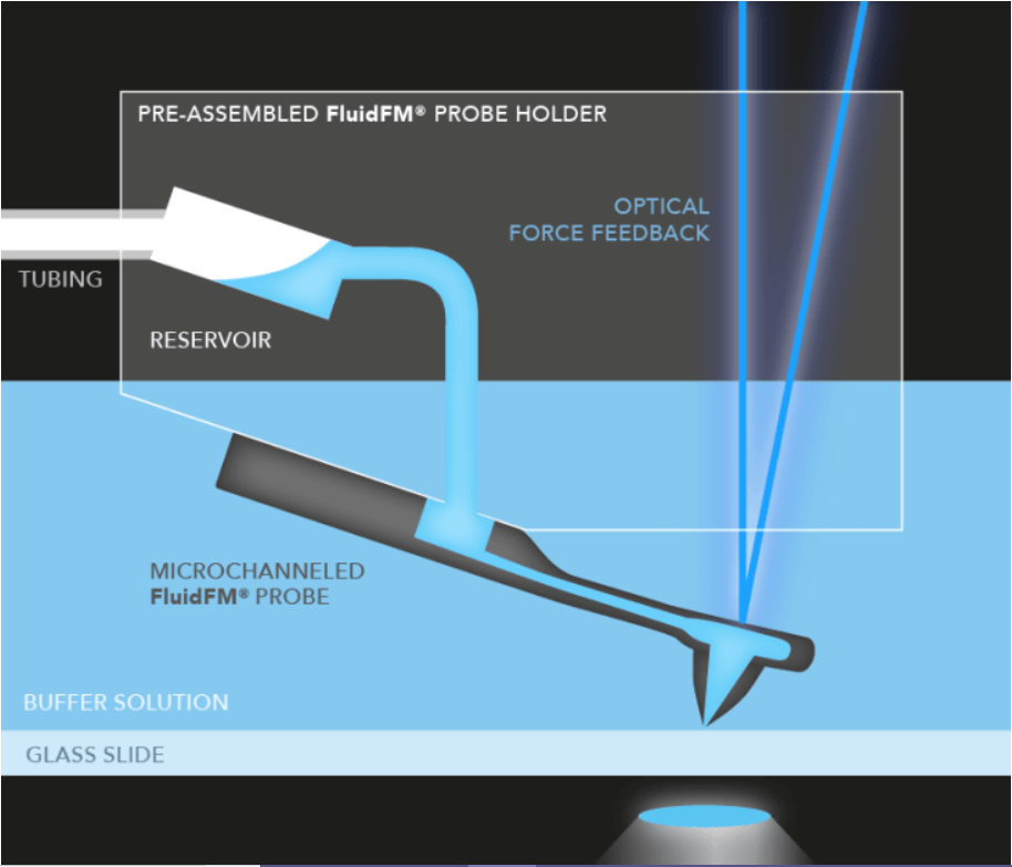 FluidFM的核心技術(shù)是利用中空AFM針尖將AFM極高的X-Y-Z運(yùn)動(dòng)精度與微流控技術(shù)的結(jié)合,利用FluidFM技術(shù)可以將液體(聚合物或者納米顆粒)高精度的分散在樣品表面獲得納米級圖形,在此技術(shù)基礎(chǔ)上,公司用過研發(fā),結(jié)合恒電電位移設(shè)備,利用電化學(xué)原理可以直接獲得亞微米級金屬3D結(jié)構(gòu)(μAM技術(shù)),這也是當(dāng)前構(gòu)件亞微米精度3D金屬結(jié)構(gòu)最有效的手段之一。
